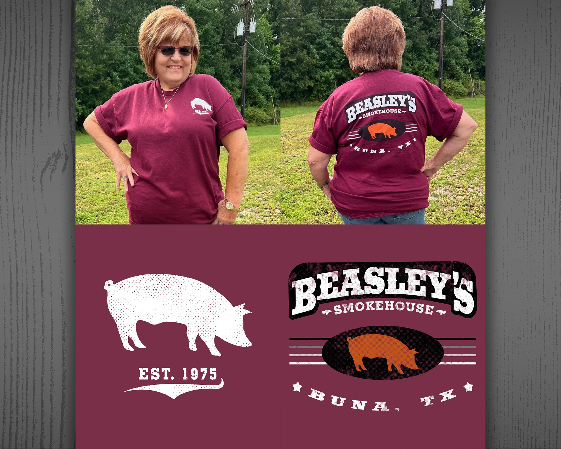 Shirts and hats produced for a family-owned Texas smokehouse. The client requested artwork
